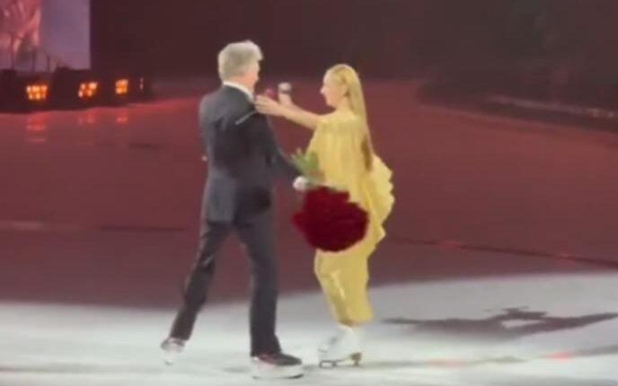 Портпаролот на Кремљ, Дмитриј Песков, излезе на мразот за време на јубилејниот настап на мразот на неговата сопруга, олимписката шампионка Татјана Навка и танцуваше со неа, воодушевувајќи ги сите присутни!