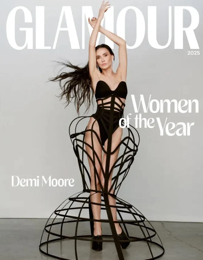 Американската актерка Деми Мур беше прогласена за Жена на годината во новиот број на американското списание „Гламур“, а за насловната страница позираше во впечатлива облека.