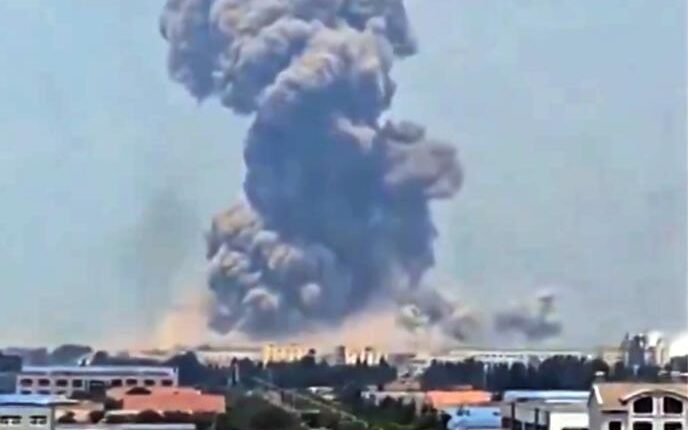 Висок столб чад се издигаше од локацијата, која се наоѓа во индустриска зона во градот Вејфанг.