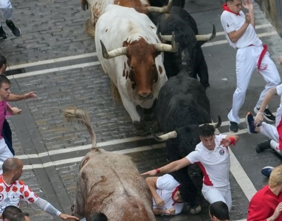 Голем број учесници беа прегазени од биковите, како што беше прикажано во живо на телевизија. Двајца од биковите се лизнаа и паднаа на влажната калдрма.