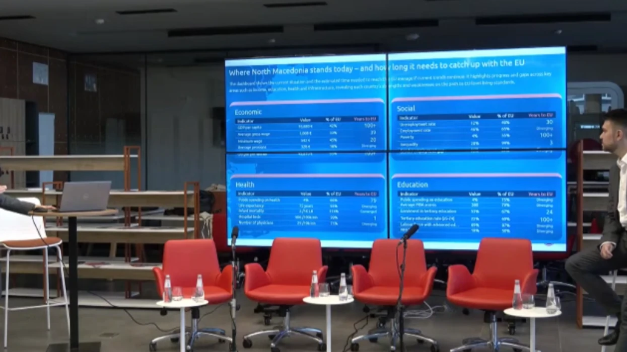 „На прв поглед, оваа бројка може да изгледа песимистички, односно многу долга, но постојат многу фактори што можат да го забрзаат овој процес. Ова е пораката на која треба да се фокусираме како општество. Како дел од истражувањето, подготвени се неколку сценарија што покажуваат како би се променил овој период во случај на полноправно членство во Европската Унија, со пристап до пазарот, средства и континуирана институционална поддршка. Сите сценарија, особено во клучните области – економија, социјални политики и дигитализација – даваат јасна слика дека ситуацијата значително би се променила, па дури и некои индикатори би биле преполовени, доколку имавме полноправно членство или целосен пристап до европските фондови“, нагласува Виктор Митевски“, извршен директор на Здружението за истражување и анализа.