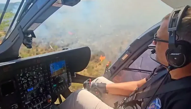 Низ чадот директно до огнот: Погледнете низ хеликоптерската кабина на противпожарната единица кај Кладово
