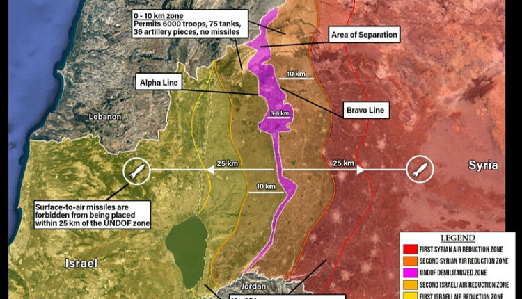 Сирија и Израел технички се во војна од 1948 година, кога беше формирана државата Израел, а конфликтите и тензиите меѓу двете земји го карактеризираа целиот тек на арапско-израелскиот конфликт. Договорот од 1974 година, по посредништво на тогашниот државен секретар на САД, Хенри Кисинџер, следеше по крвавата Јом Кипурска војна од 1973 година. Договорот воспостави тампон зона под надзор на Обединетите нации во Голанската Висорамнина, каде што се стационирани меѓународните мировни сили (UNDOF).