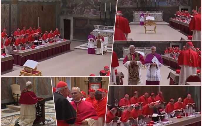 На видеото, папата Лав XIV може да се види како се моли пред членовите на Кардиналскиот колегиум од олтарот на историската римска катедрала, по што се повлекува и се моли приватно. На крајот, тој е виден како се ракува со кардиналите со насмевка.