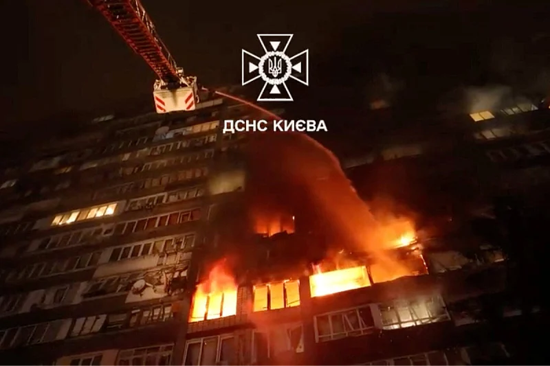 Фотографии од запалени станови се појавија на социјалните мрежи, додека пожарникарите се обидуваа да го локализираат пожарот. Фрагменти од соборени дронови паднаа на неколку локации во градот.