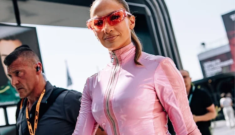 Џенифер Лопез се појави на последниот тренинг пред квалификациите за Формула 1 трката во Саудиска Арабија, пристигнувајќи во тесен жешко розов костум со соодветни розови очила за сонце.