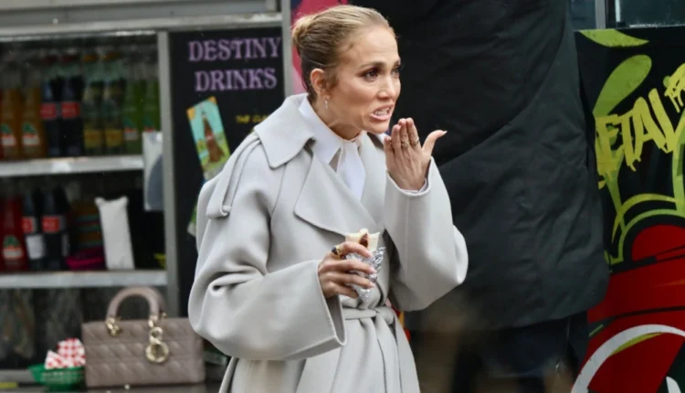 Џенифер Лопез била забележана со смешни мимики додека јадела сендвич додека била прилично добро облечена.